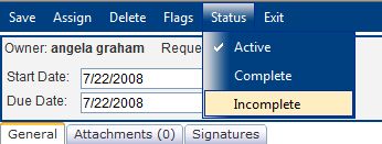 3. From the Task Details Window, select the Status drop down menu and select either Complete or Incomplete to change the task status.