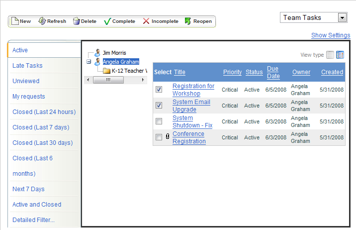 You can assign a status to a task using the Main Task Window or the Task Details Window. Status Reporting keeps track of the tasks that are late, coming due, etc.