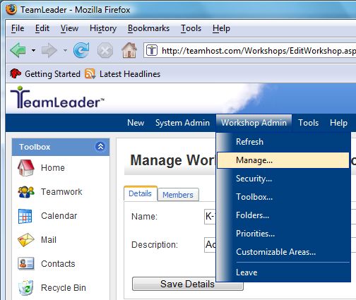2. Select Workshop Admin > Manage.
